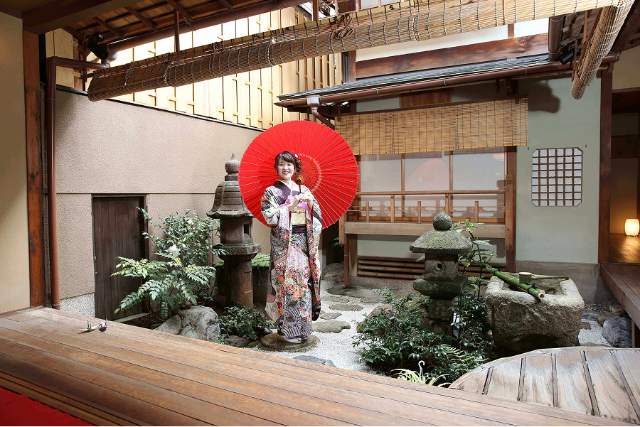 当社独自の祇園町家撮影は「日本の美」である着物姿を一段と引き立てる風景とともに、心温まる魅力的な想い出の一枚を残せます。